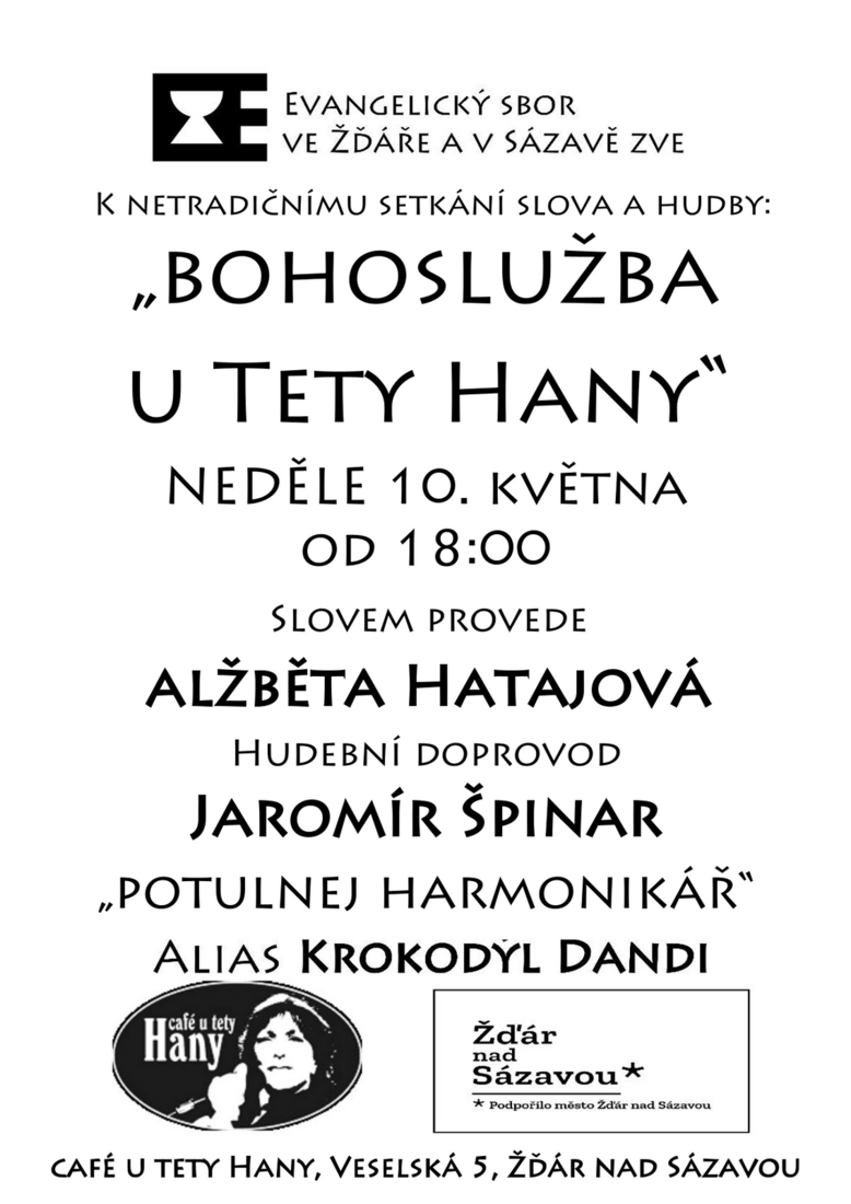 Bohoslužba se koná 10.5. 2026 a začíná v 18:00. Slovem provede evangelická farářka Alžběta Hatajová